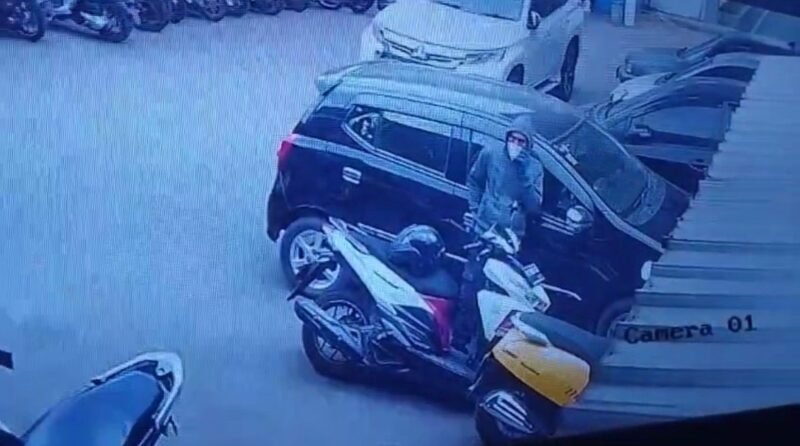 Terpantau CCTV, pelaku sempat terlihat mondar-mandir di sekitar area parkir dengan gerak-gerik mencurigakan.
