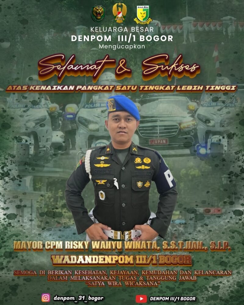 Bogor, Suarrealitas.co – Mengucapkan Selamat atas kenaikan pangkat kepada Mayor CPM RISKY WAHYU WINATA S.S.TIIAN.,S.I.P