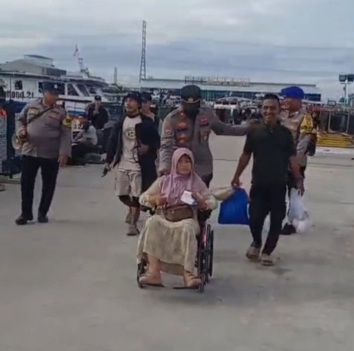 Selain itu, Iptu Fritz dan Iptu Mashudi juga turut membantu seorang warga bernama Ibu Husnul Khotimah yang baru pulang berobat dari RSUD Teluk Gong untuk menaiki kapal tujuan Pulau Pramuka.