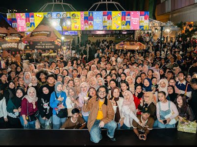 Acara ini juga dimeriahkan dengan tantangan berhadiah, spot foto kekinian, serta penampilan spesial musisi Kunto Aji yang menambah atmosfer hangat dan ceria di tengah hiruk-pikuk Blok M.